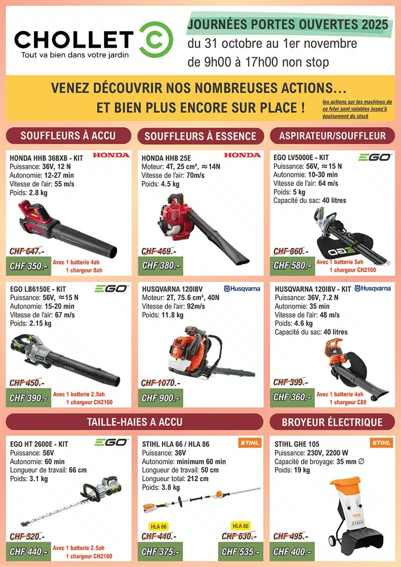 souffleurs, taille-haies, broyeurs, robots de tonte et bien plus encore !