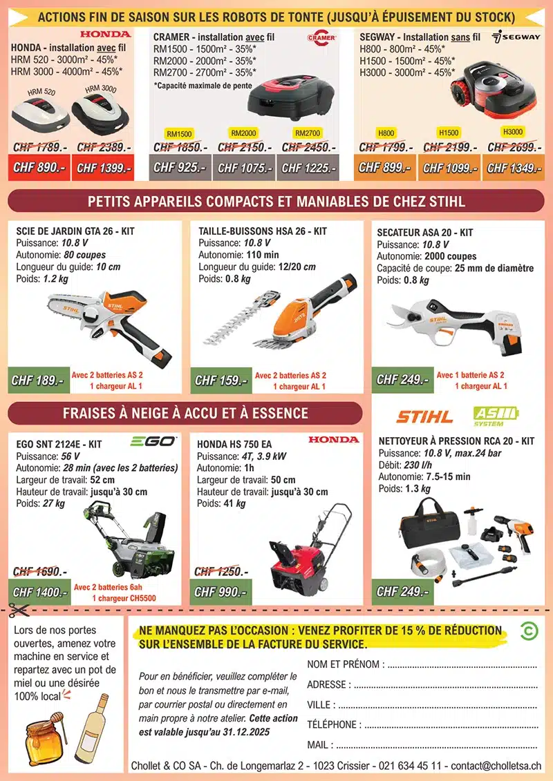 🍯 Et ce n’est pas tout : apportez votre machine en service pendant ces deux jours et repartez avec un pot de miel ou une boisson “Désirée” 100 % locale, tout en bénéficiant de 15 % de réduction sur l’ensemble de la facture du service.