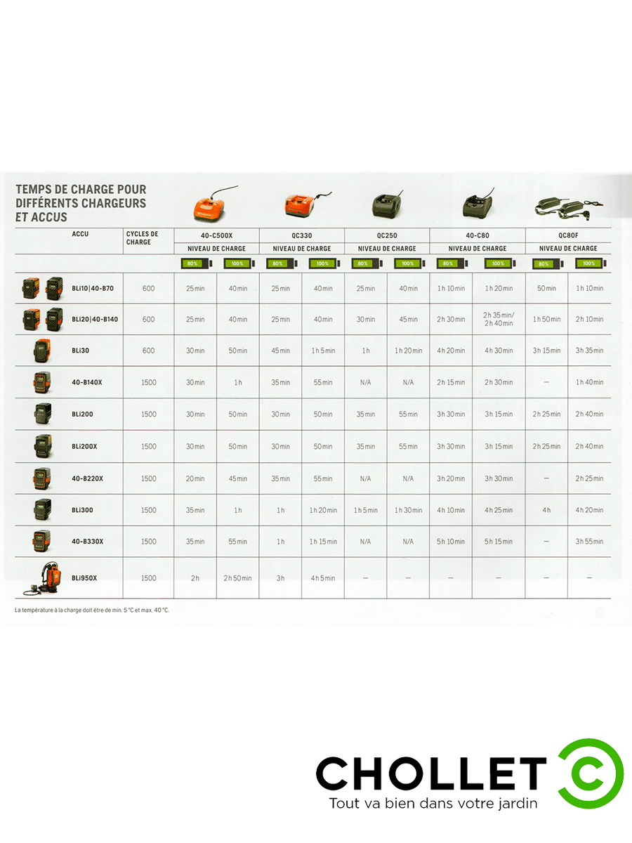 40C-C500X | Chargeur Li-ion Système BLi-X | 100 – 240 V | 25m – 35m / 40m – 2h50 | 1,88 kg | 190.- |